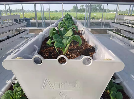 NFT营养液管道栽培,应用于多品类叶菜种植,植物的根系生长在栽培专用管道中,营养液通过该管道不断循环,从而给植物提供必要的营养和水分。减少了水和营养液的消耗,与其他系统类型相比,相对容易对根和设备进行消毒,定期供给营养(及相关冲洗)可防止局部无机盐在根区堆积,并维持根部区域pH值及EC不变,环境友好型的技术,减少了下水污染。