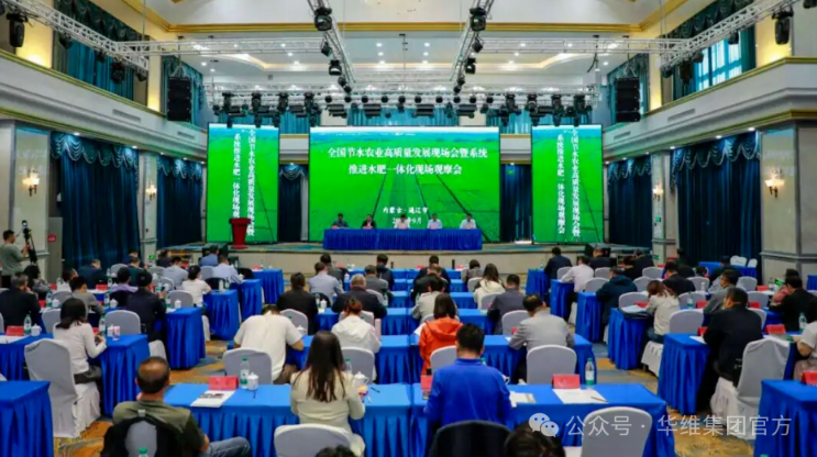 2025年9月24日,全国节水农业高质量发展现场会暨系统推进水肥一体化现场观摩会在内蒙古通辽市召开。农业农村部种植业管理司副司长李增裕、内蒙古自治区农牧厅副厅长赵玉生出席并致辞,全国农业技术推广服务中心副主任张宪法主持会议。华维集团应邀参会,在观摩现场讲解展示智慧灌溉技术、设备。
