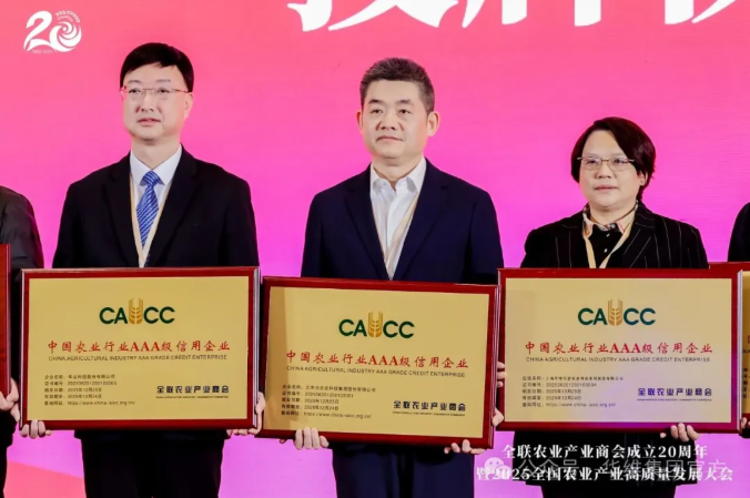 在大会重磅荣誉发布环节,2025中国农业企业信用评价AAA级名单正式揭晓,华维凭借多年来在智慧灌溉、可控农业领域的深耕积淀,以优质产品、专业服务助力全国高标准农田、单产提升、现代农业园区等建设,凭借良好品牌口碑与规范经营口碑,成功斩获AAA级最高信用等级,这份荣誉既是行业对华维综合实力的高度肯定,更是对华维坚守初心、服务农业强国建设的有力见证。
