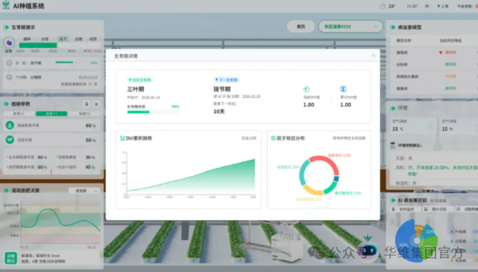 在华维集团的AI种植平台上,无论您身在何处,都能通过手机或电脑,实时看到千里之外基地的作物生长画面与环境数据。这不仅仅是一个监控工具,更是一套“硬件+软件+AI算法”的一体化智能解决方案。