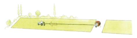 喷灌机喷洒原理示意图 1、把主机稳放到灌溉田块的一端;